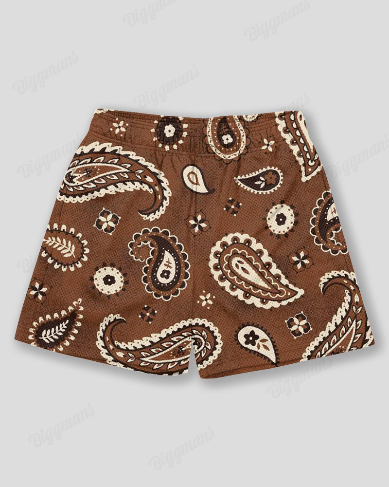 Plus Size Men's Brown Paisley Graffiti Print Sports Mesh Quick Dry Shorts