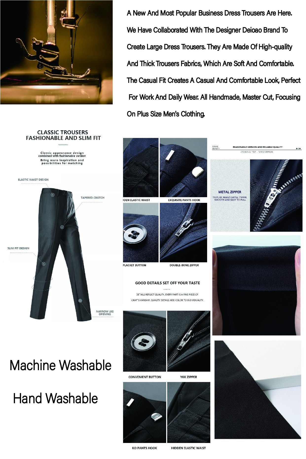These men's solid-color trousers come in 5 classic color options and feature a relaxed, extended design. Made from a cotton-polyester blend fabric, they offer flexibility and durability. The tapered fit provides a sleek silhouette, while thoughtful design details add practicality. A versatile piece for various occasions.