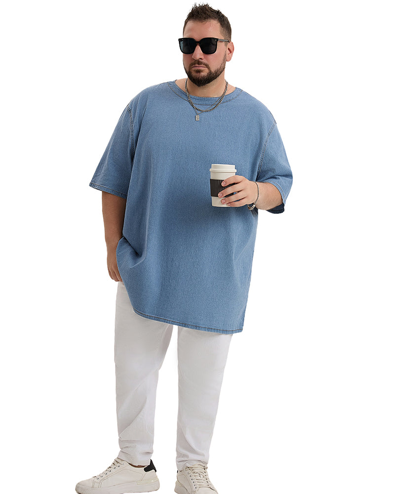 Plus Size Men's Daily Leisure Washing Water Solid Color Denim T-shirt