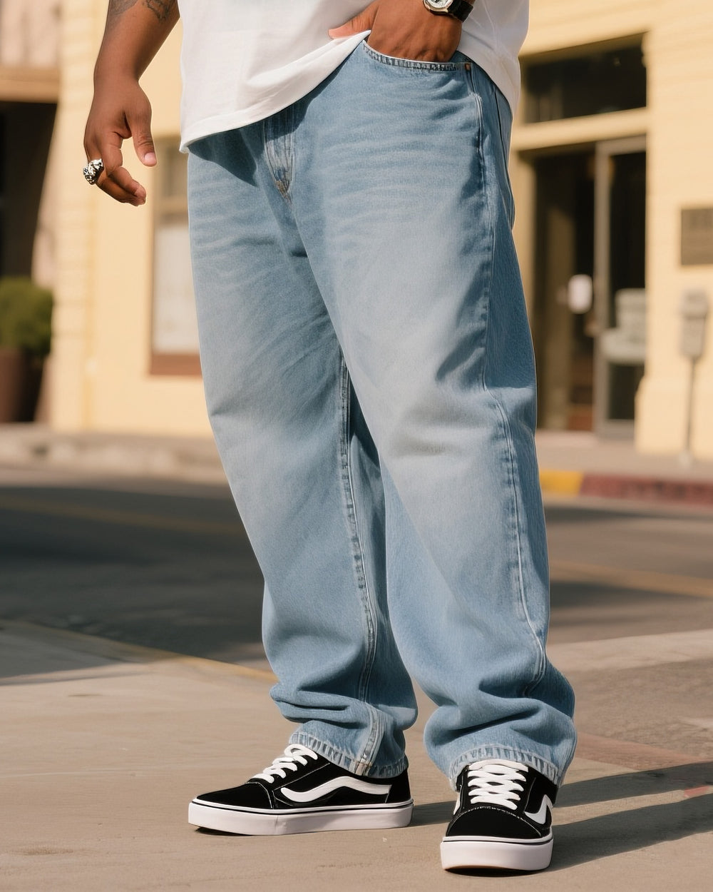 Plus Size Men's Faith Printed T-Shirt Denim Pants Suit