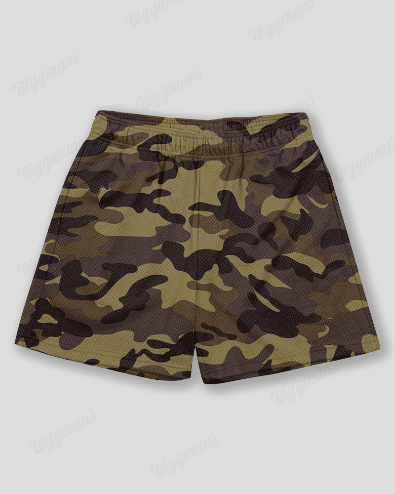 Plus Size Men's Green Camouflage Graffiti Print Sports Mesh Quick Dry Shorts