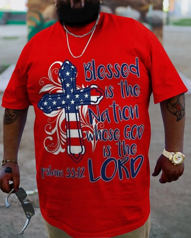 Plus Size Men's Independence DayBlessed Is The  Nation Whose God Is The Lord T-Shirt