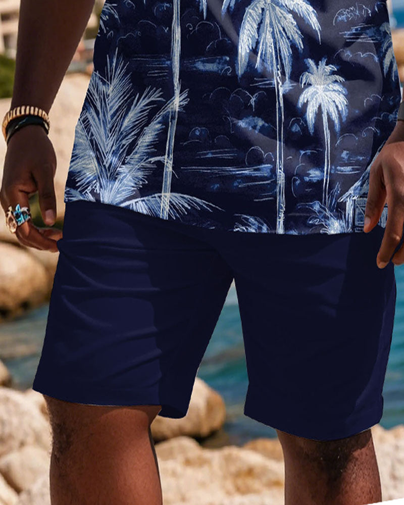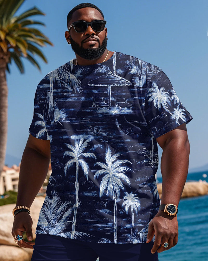 -Style this navy blue short-sleeve T-shirt with a palm tree print in a tropical-inspired style for a relaxed, fun vibe.