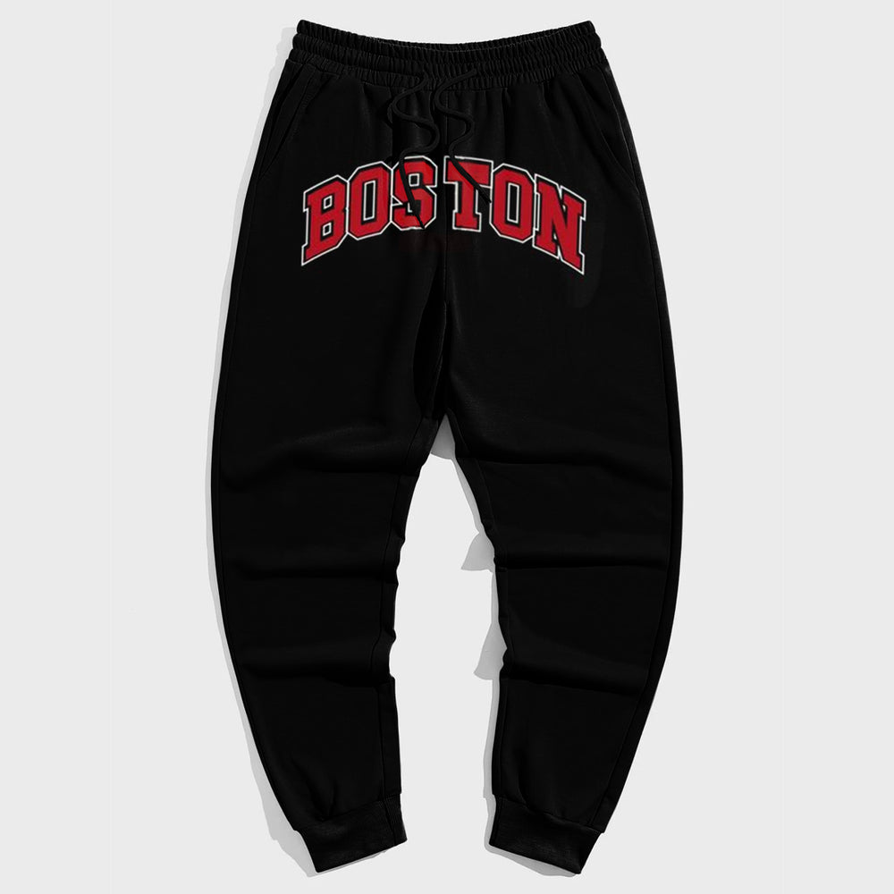Thinking about a simple but distinctive pair of casual pants? These men's pants with red BOSTON lettering are suitable for casual occasions. The loose fit ensures maximum comfort. These versatile pants perfectly balance comfort and modernity, making them the perfect partner for your daily outfit