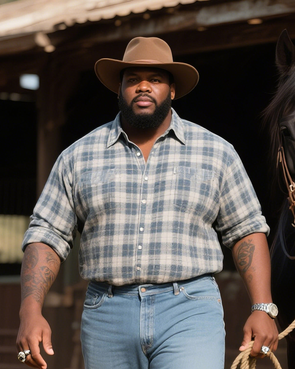 Plus Size Men's Western Style Retro Striped Long Sleeve Shirt Trousers Suit