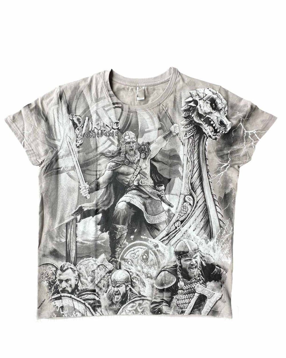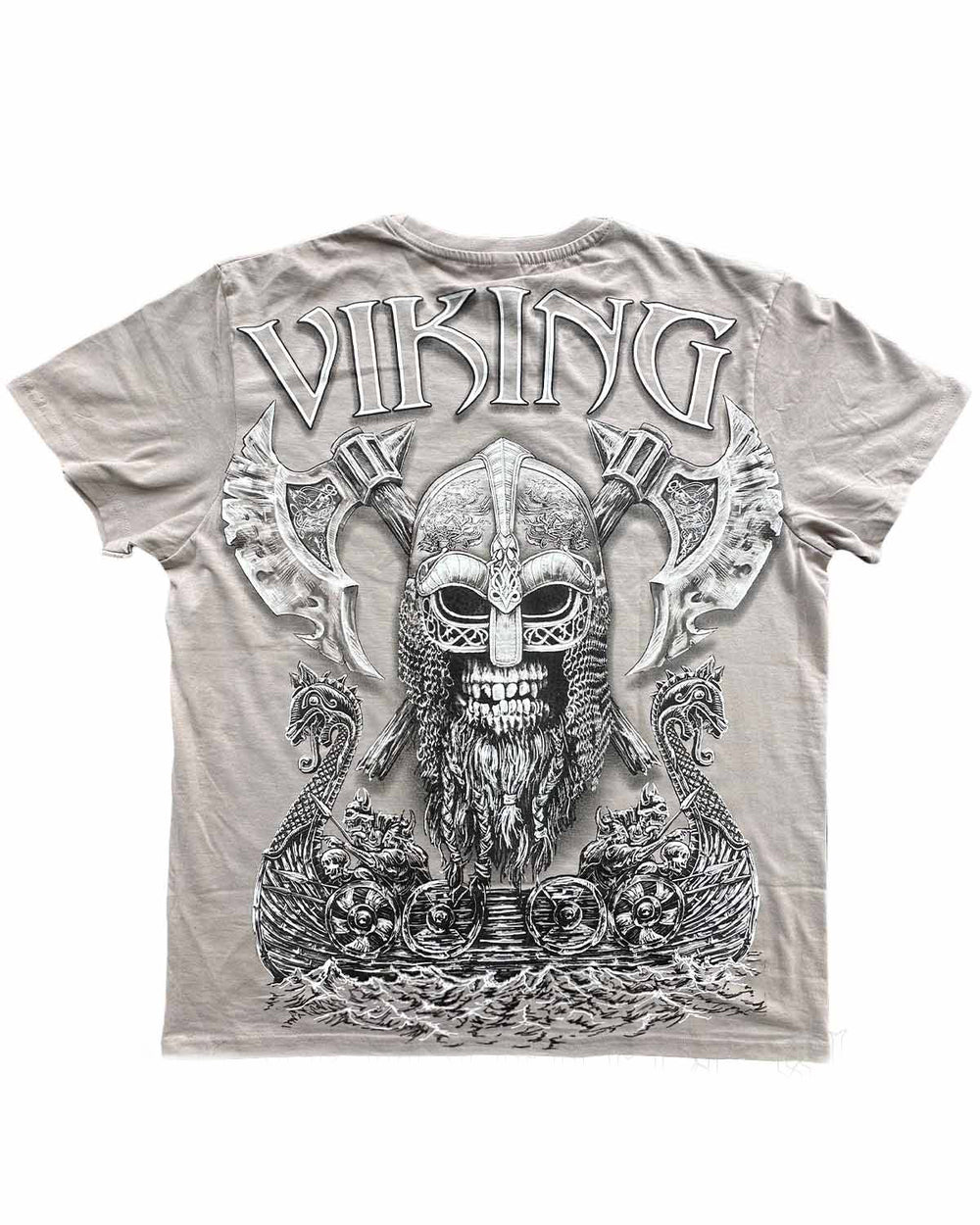 Plus Size Rice Gray Print T-shirt In A Bold And Intense Viking-themed Design-printed Front And Back