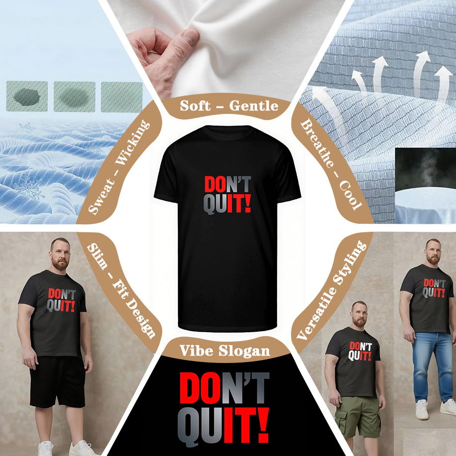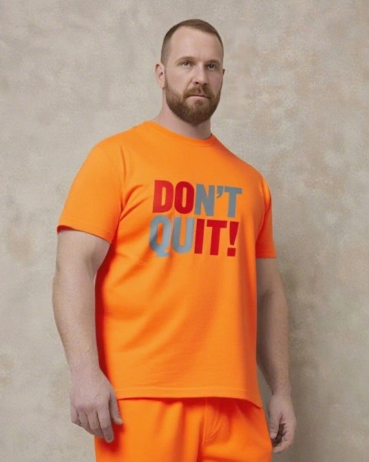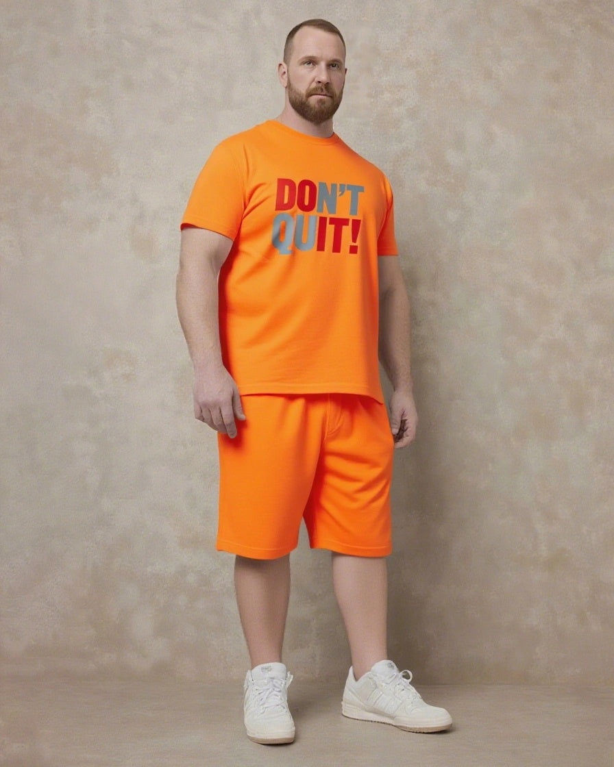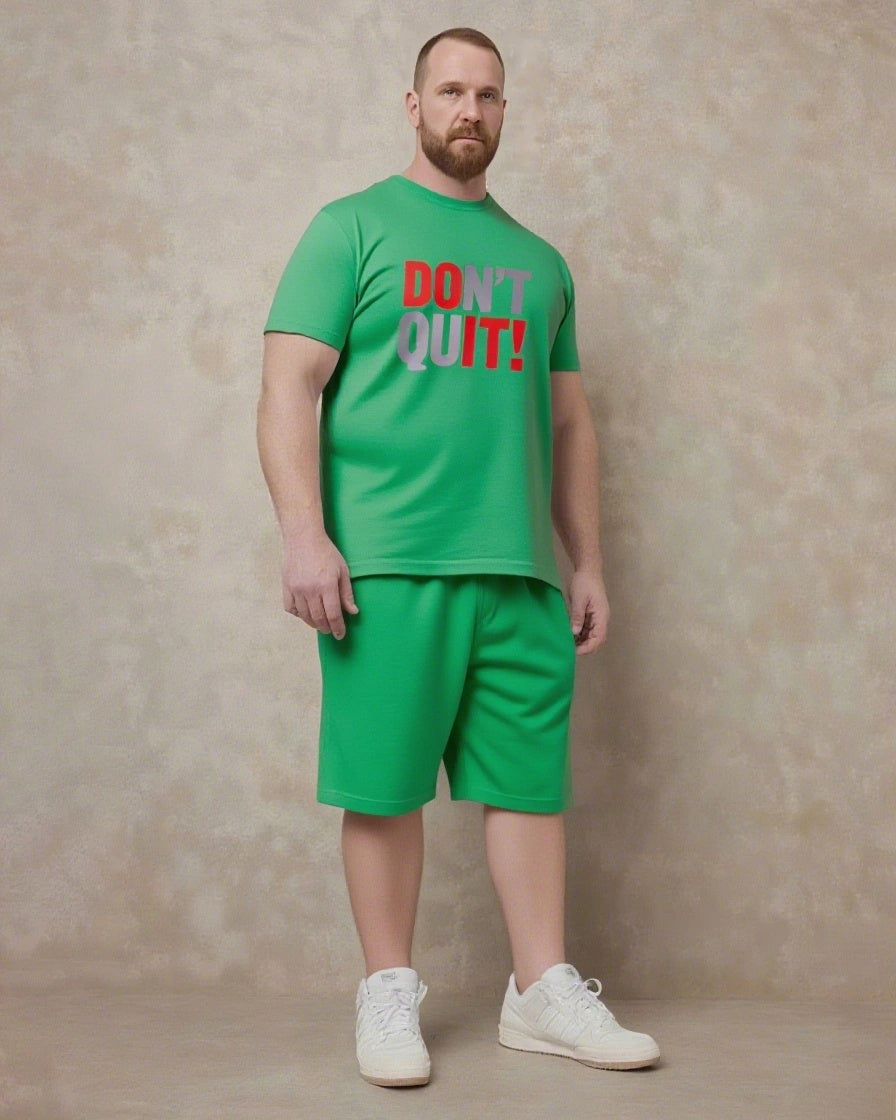 Quit Is Not In Your Code Men's Big and Tall Simple Lettering Short Sleeve T-shirt 2-Piece Set