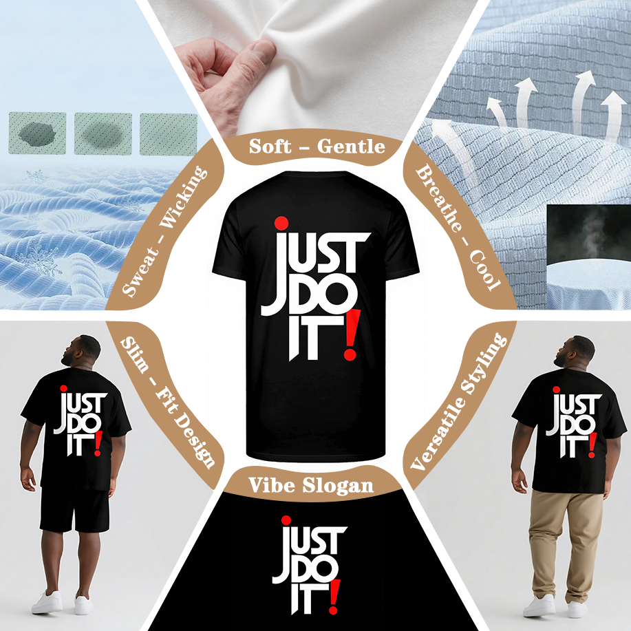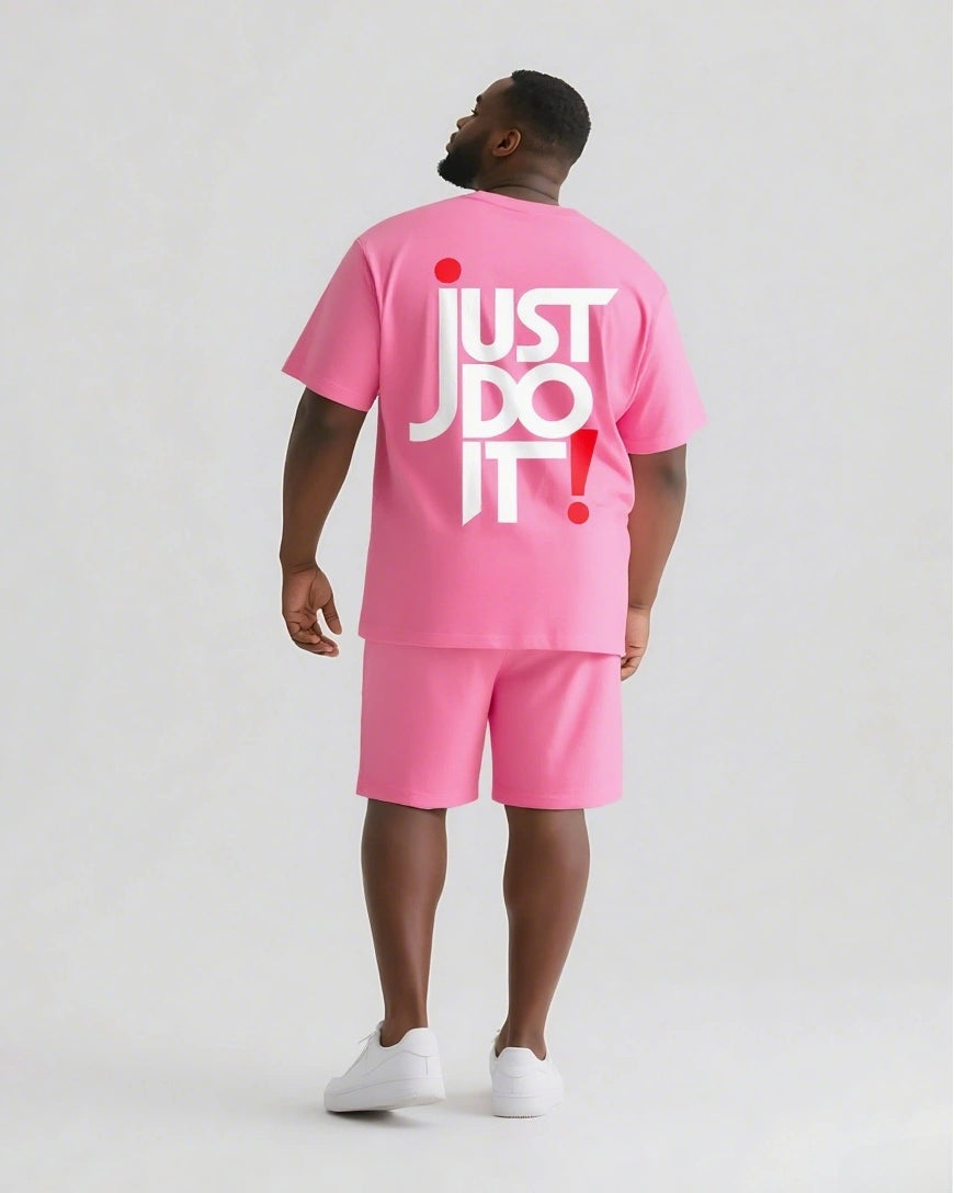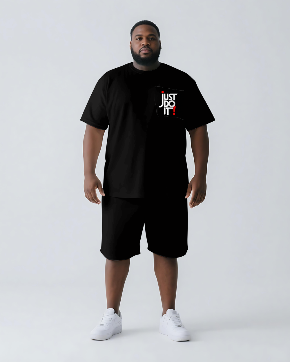 Quit Thinking Start Doing Big & Tall Men's Simple Lettering T-shirt 2-Piece Set