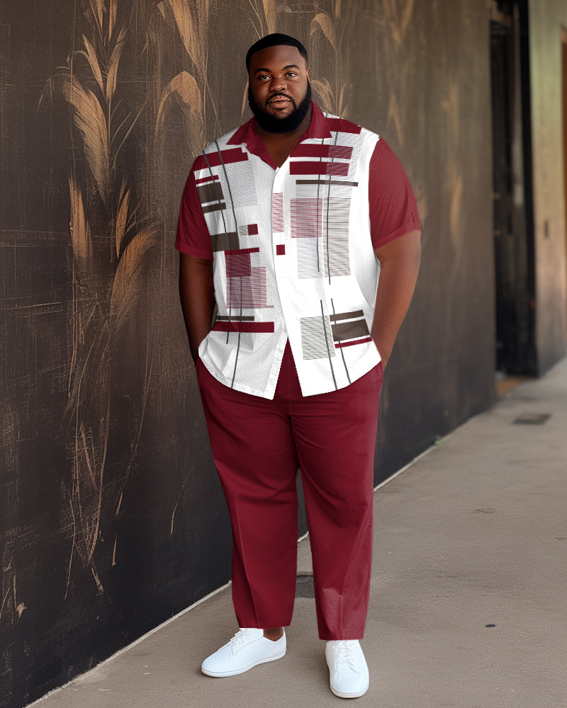 This men's has a short-sleeved shirt with classic geometric prints and red trousers, which makes the overall style very unified. The loose version design is comfortable and breathable. It can be easily controlled whether it is casual outings or business negotiations. Please put it on, you will be the most eye-catching scenery on the street!