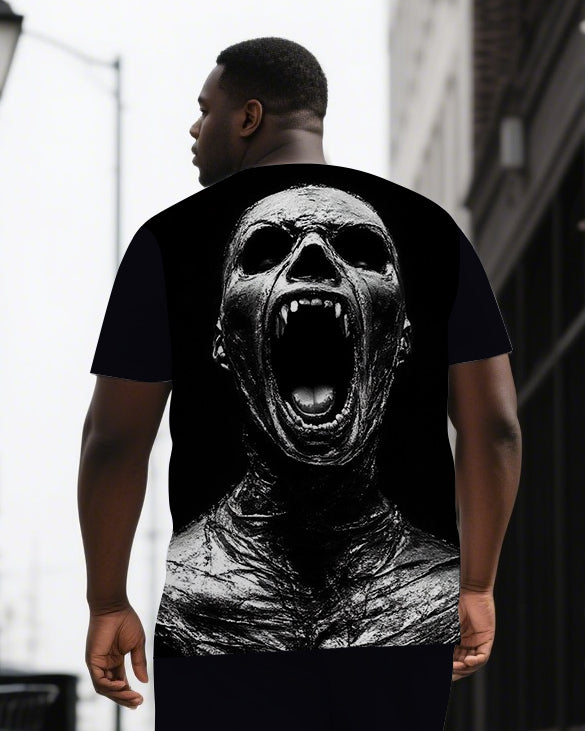 Roar with Skull Power Men's Big & Tall Skull Back Theme Short Sleeve T-shirt 2-Piece Set