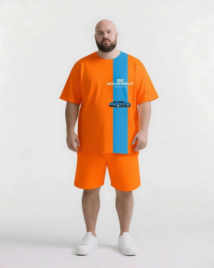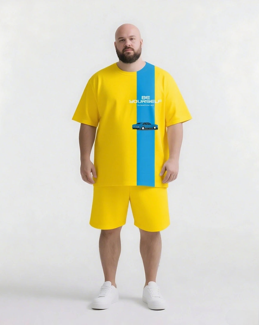 Rooted In Self Reaching for More Big & Tall Men's Simple Lettering T-shirt 2-Piece Set
