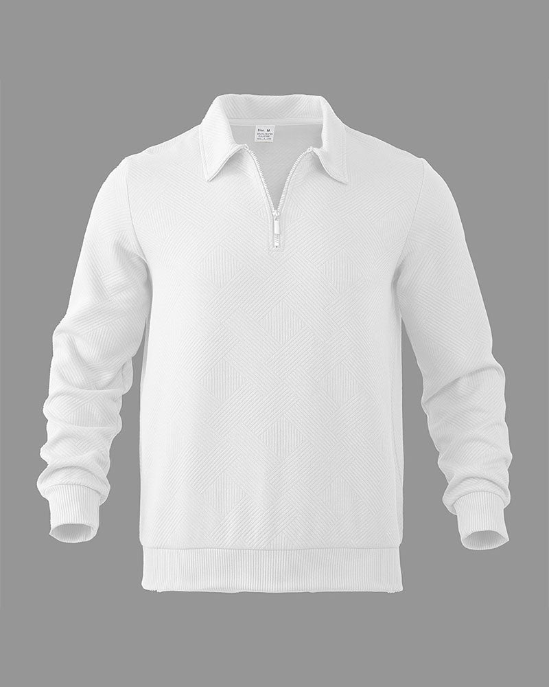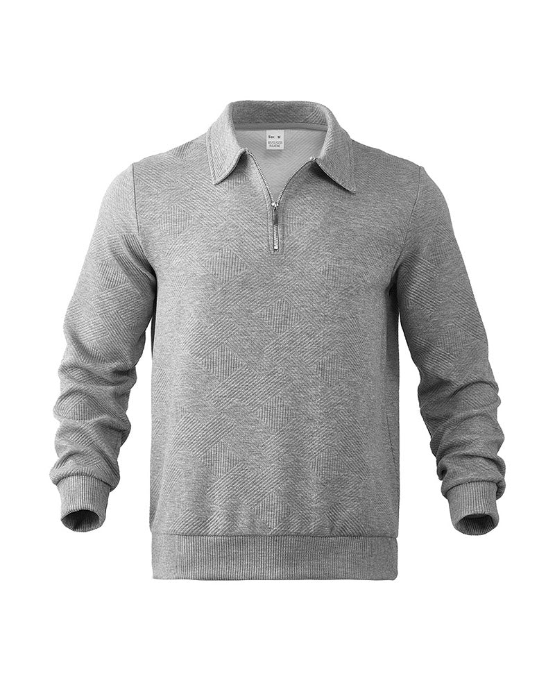 Simple solid colour lapel half zip long sleeve sweatshirt, a fashionable choice. The solid colour design is simple and elegant, and the lapel collar adds a sense of sharpness. The half zip makes it easy to take on and off and adjust the collar size. Long sleeve style, can be worn alone in spring and autumn or underneath in winter, easy to create a casual, comfortable and handsome wearing style.