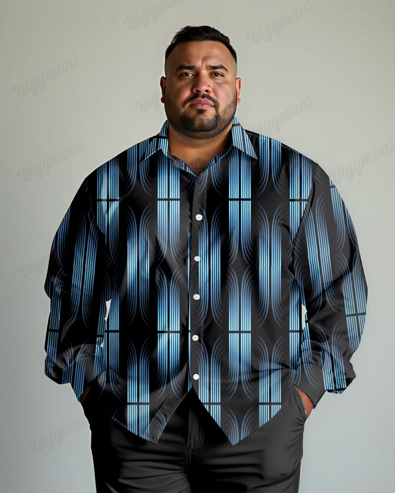 Shades Geometric Wave Pattern Long Sleeve Laps Shirt Men's Plus Size