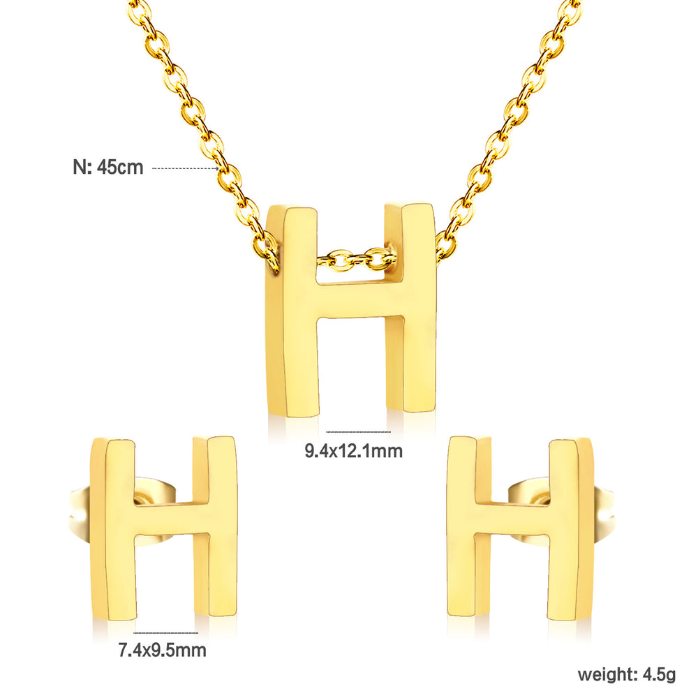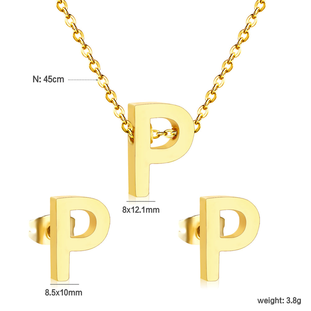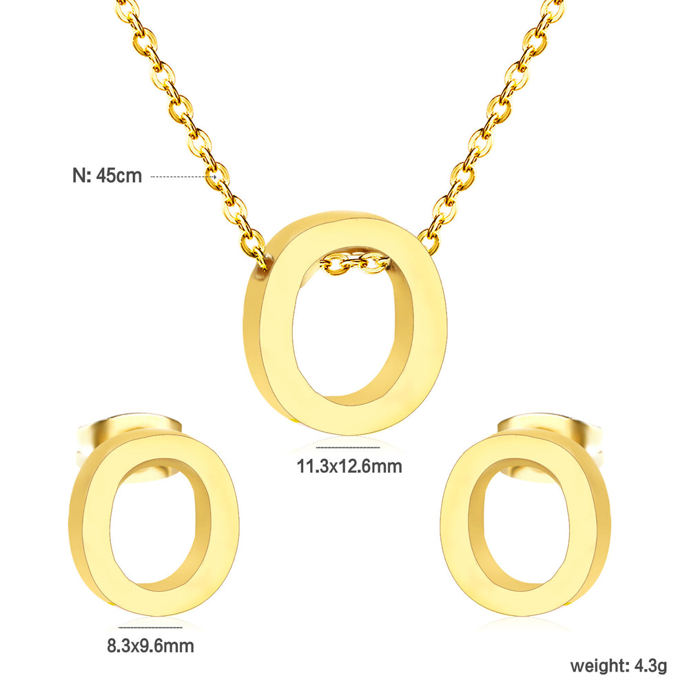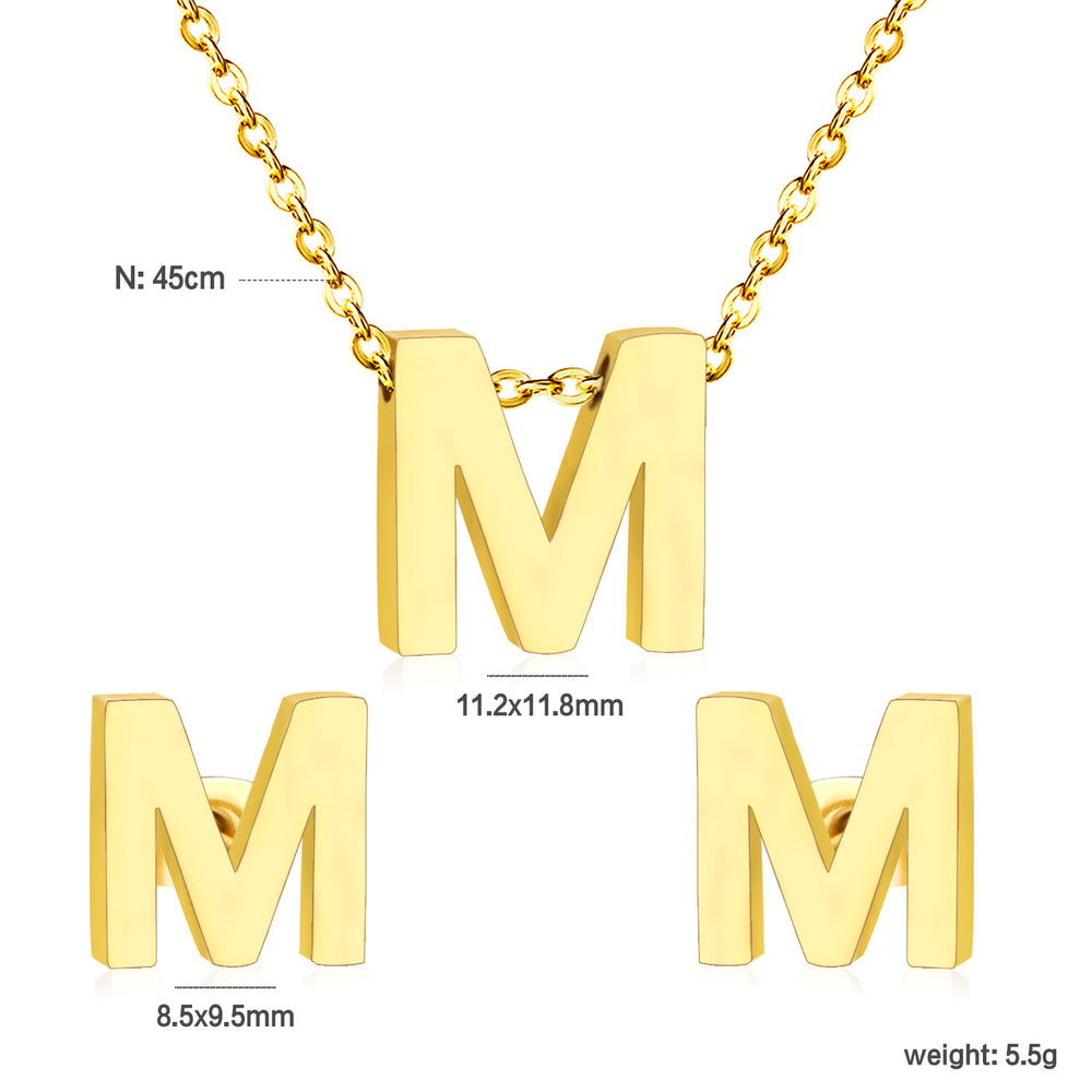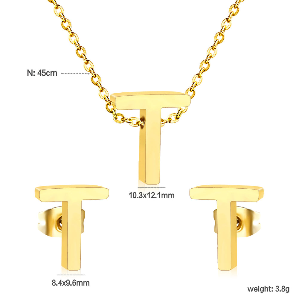 Simple 26 English Alphabet Necklace Earrings Jewelry Set