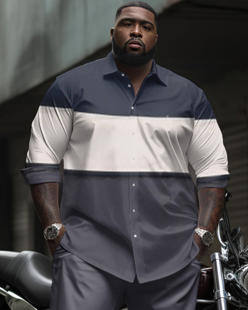 Refine your wardrobe with this big & tall men's long sleeve shirt and pants set, featuring a color block for understated elegance. The breathable fabric and relaxed cut provide all-day comfort, while reinforced stitching ensures lasting quality. Perfect for business settings where sophistication matters.
