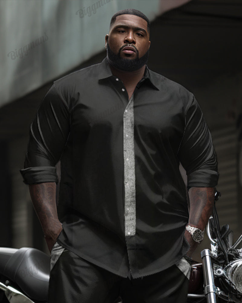Featuring a gray print along the placket, this black two-piece set offers a gentlemanly touch. The classic look pairs effortlessly with any outfit, while the high-quality fabric ensures comfort and durability. Simple yet stylish, it suits business and casual settings.