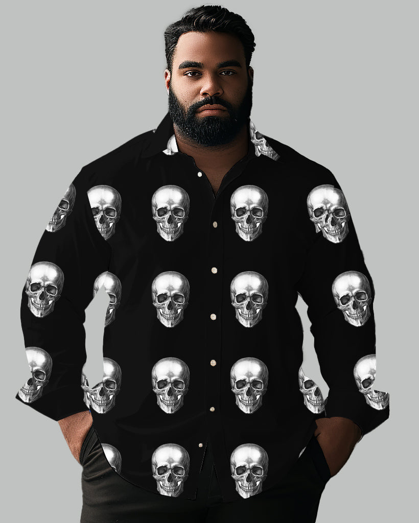 If you like skulls, you can't miss this big & tall men's long-sleeve shirt. This shirt, with white skull prints, shows a unique personality. The puff crepe material ensures breathability and comfort. Wearing it, you can enjoy the unique charm of classic styles and innovative patterns.