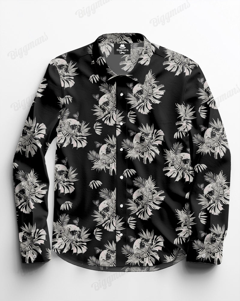 -The design is inspired by death and rebirth: the skull is often seen as a symbol of death, but also represents rebirth and transformation. Combining skulls with leaves conveys a philosophical reflection of finding life in death and pursuing rebirth in the midst of adversity.- Designer DEIOAO Brand Collaboration Cotton Shirt