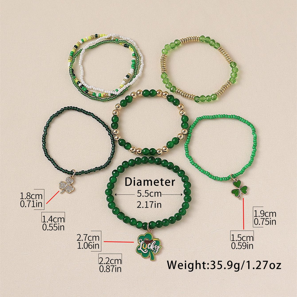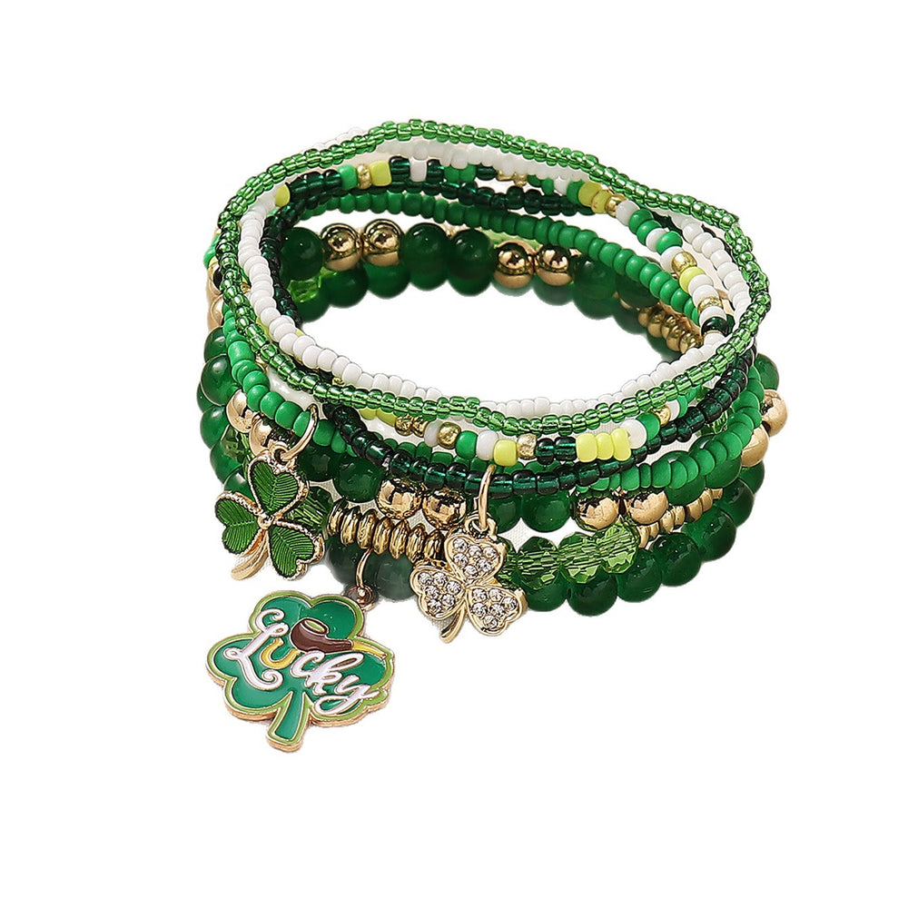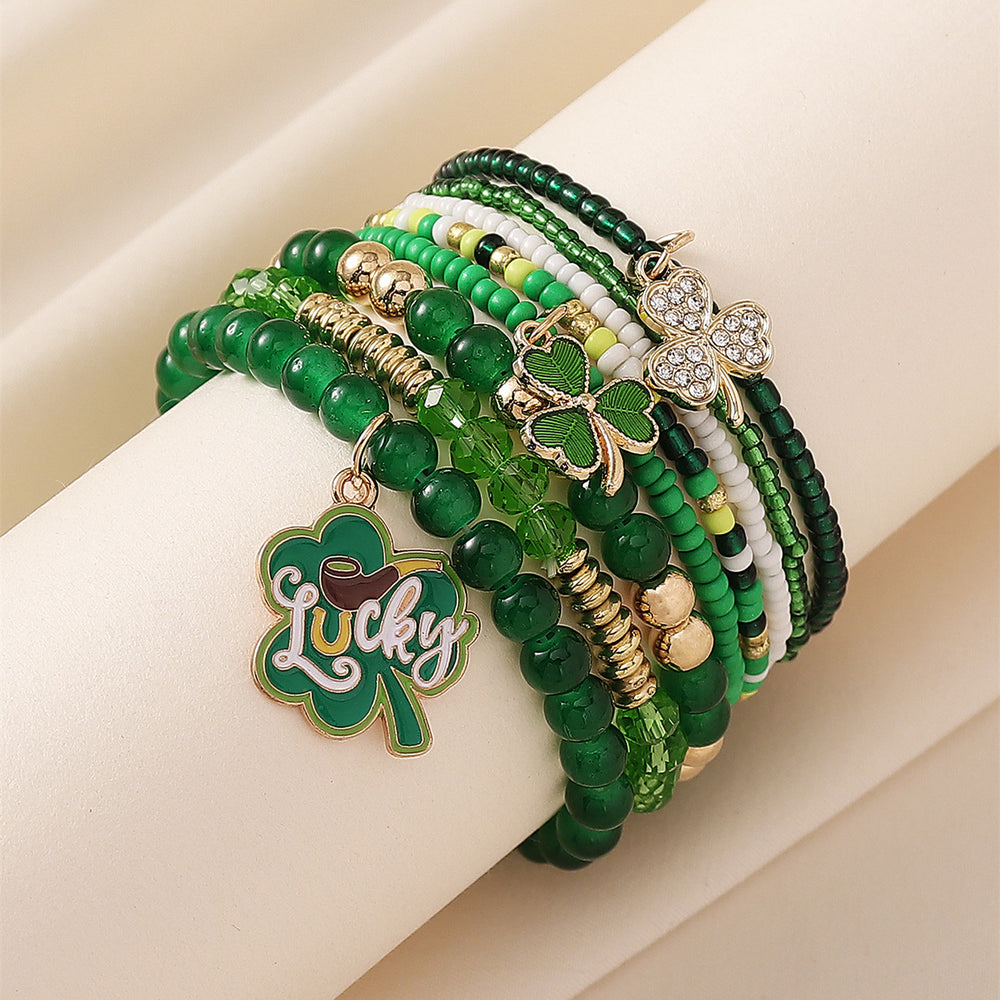 St. Patrick's Day LUCKY Clover Pendant Stacked Bracelet Set