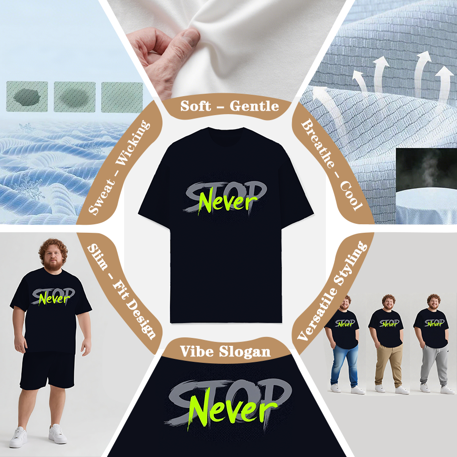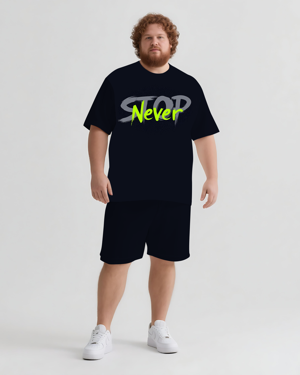 Stop Never Sky Has No Limits Men's Big and Tall Simple Lettering Short Sleeve T-shirt Shorts Set