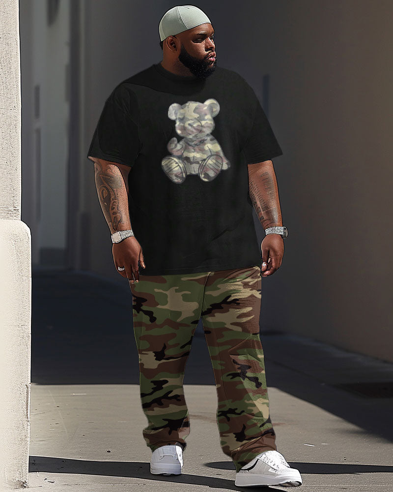 This two-piece set brings a fun twist to street fashion with a camouflage teddy bear print. Simple yet full of personality, it blends casual style and bold design. Its comfortable fit makes it easy to wear. With its relaxed vibe, this set is ideal for a laid-back streetwear look.