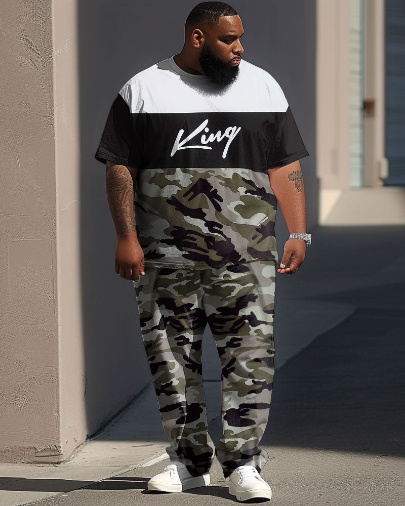 Street Camouflage Color Block KING Letter Print Large Men's Suit