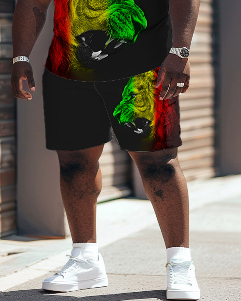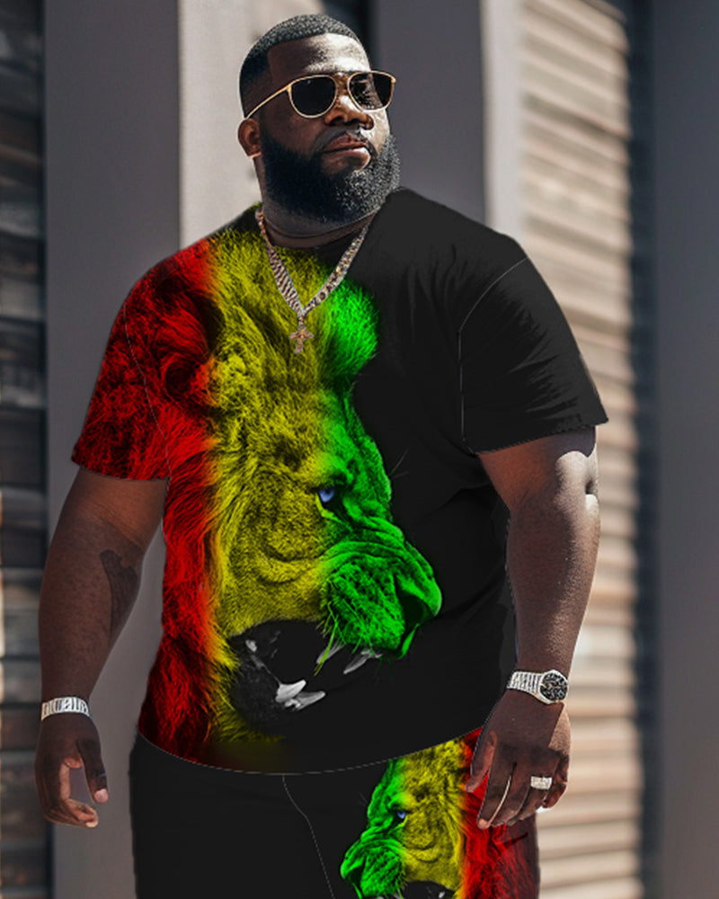 Get ready to turn heads with our big & tall men’s two-piece set! It captures a hip-hop feel, featuring an awesome roaring print in bright red, yellow, and green graffiti. Perfect for summer laid-back events, this set is super versatile and comfy. This outfit is your go-to for bringing fun to your wardrobe!