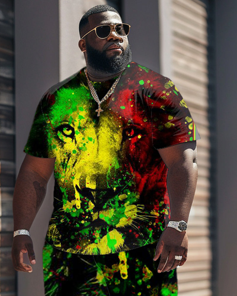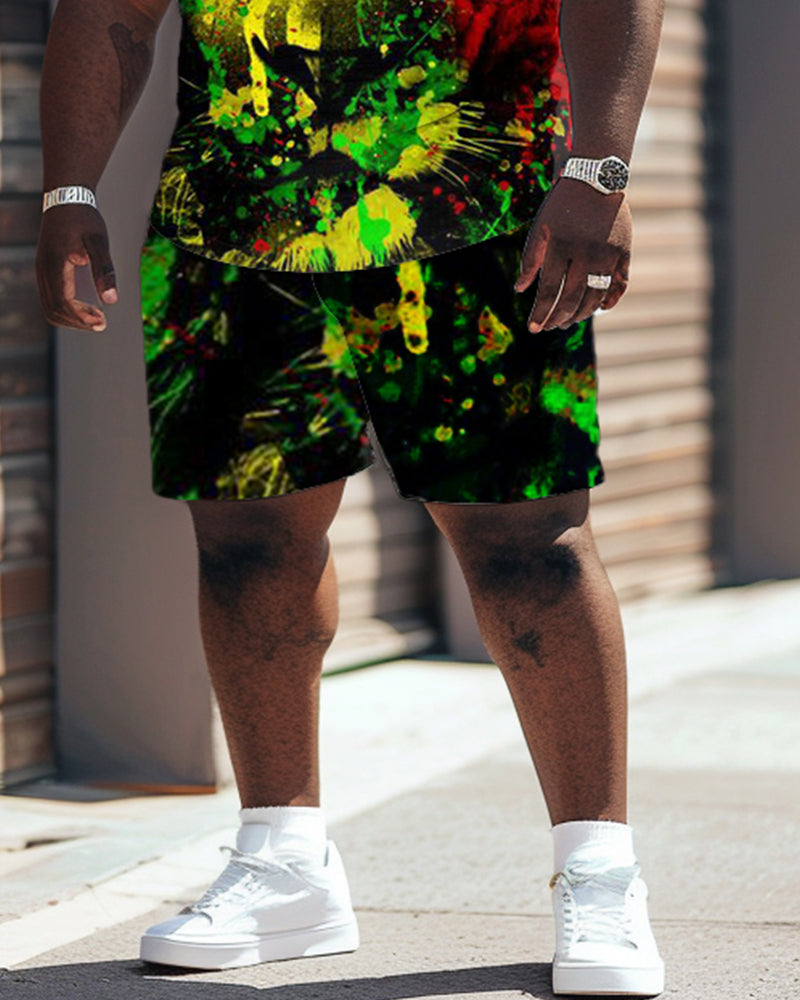 Street Cartoon Red And Green Color Block Splash Ink Print Large Men's Suit