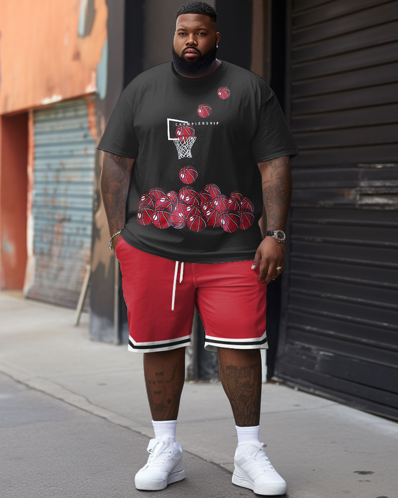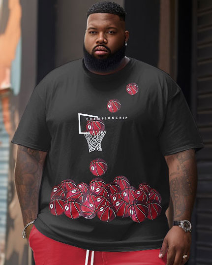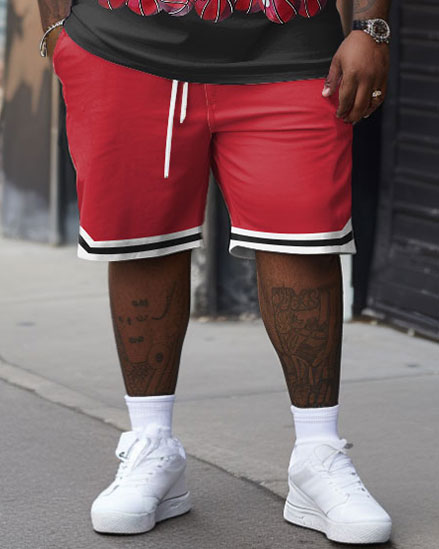 This short-sleeve T-shirt and shorts set for big & tall men features a trendy color block design and basketball print, blending style and versatility. Perfect for daily wear, sports, or travel, it pairs easily with sneakers or flats, letting you customize your look. Cool and stylish, it's a must-have for any wardrobe!