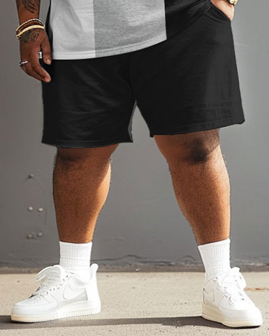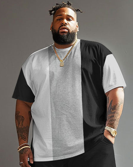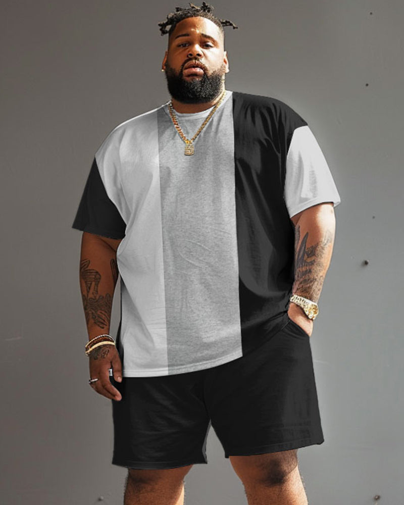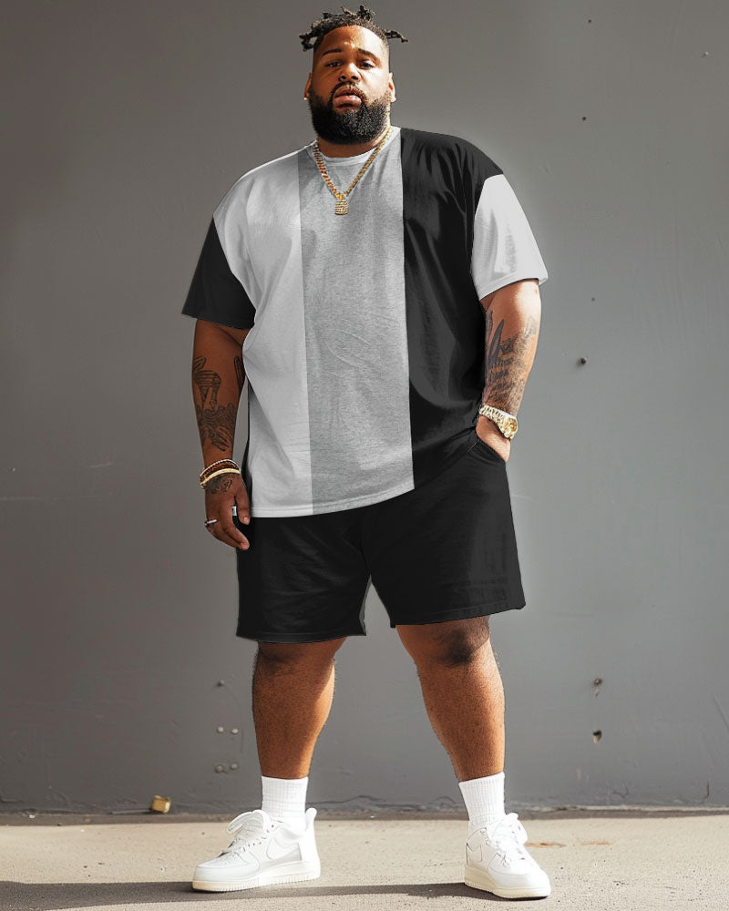 Street Casual Black White Grey Large Stripe Colorblock Print Large Men's Suit