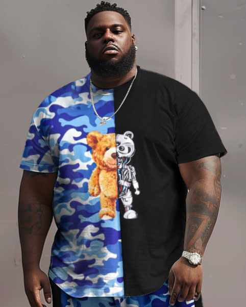 Do you want a unique fashion outfit? Our Camouflage Printing Set is tailored for you who pursue individuality and comfort. The interweaving of camouflage and color blocks and bear prints are the finishing touches that make you stand out from the crowd. Walking in a street cafe or at an outdoor party on weekends, you will be the focus of the trend. Want to show a different self in summer? Why not try to match this T-shirt with shorts and a pair of retro sneakers to create a personalized outfit. Don't hesitate to make it a new favorite in your summer wardrobe and add more possibilities to your summer outfit.