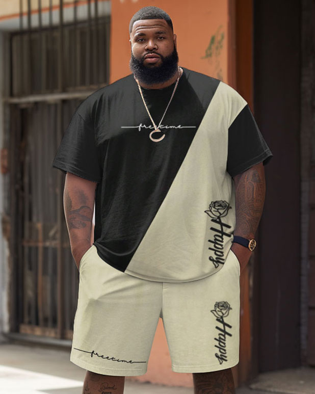 Step into summer fashion with this set, featuring a bold color-blocking . Adorned with artistic font prints, it creates a unique aesthetic. With an oversized fit, this big-guy-friendly set is perfect for sports and casual occasions. Built for the active spirit, it combines style and function for any journey.