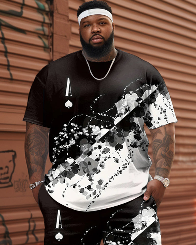 Start your street fashion journey with the splash-ink style in this big men's two-piece set. The black and white design makes the overall look vivid and individual. Suitable for leisure or sports occasions, it can easily control a variety of styles and always keep you fashionable.