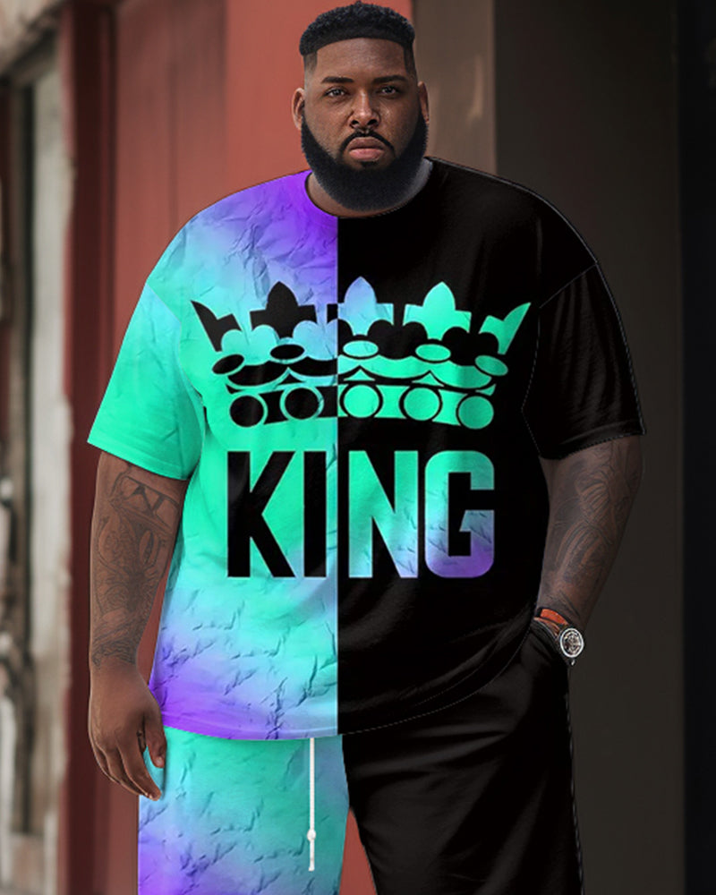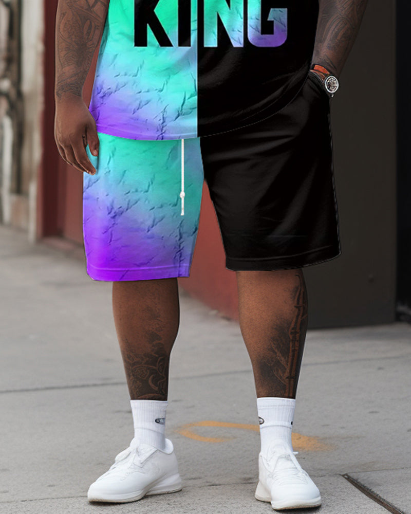 This big & tall men’s two-piece set is designed with the art of color contrast. The loose fit offers a relaxed and breathable feel for daily casual wear. Featuring a trendy black and blue gradient , this set offers a modern streetwear vibe, which is fashionable and exclusive.