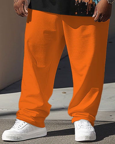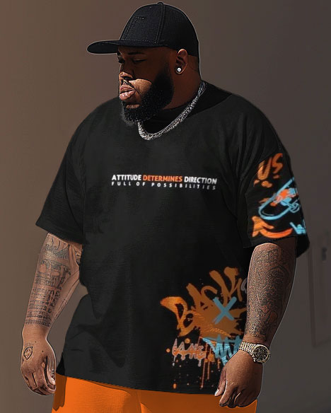 Discover effortless style with this men’s two-piece set, featuring letter prints and vibrant orange designs. This unique combination strikes a balance between simplicity and originality. Its loose fit provides comfort for a range of activities, making it versatile enough for casual outings or sports events.