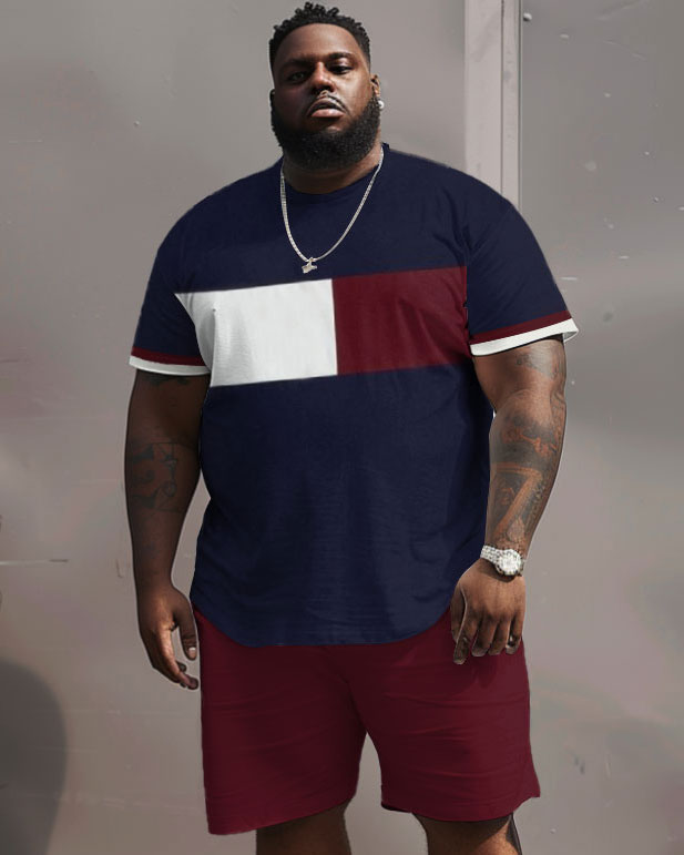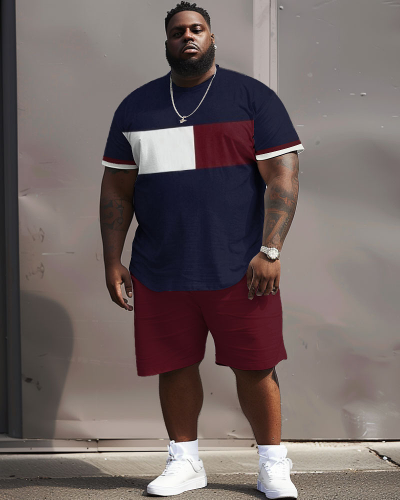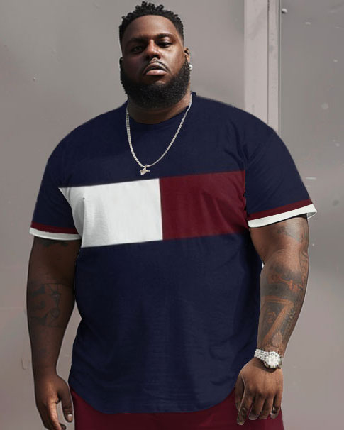 This with a deep blue and red color block design highlights fashion and personality. The loose version is designed for big men and provides a comfortable wearing experience. It is a fashion item that combines simplicity and personality.