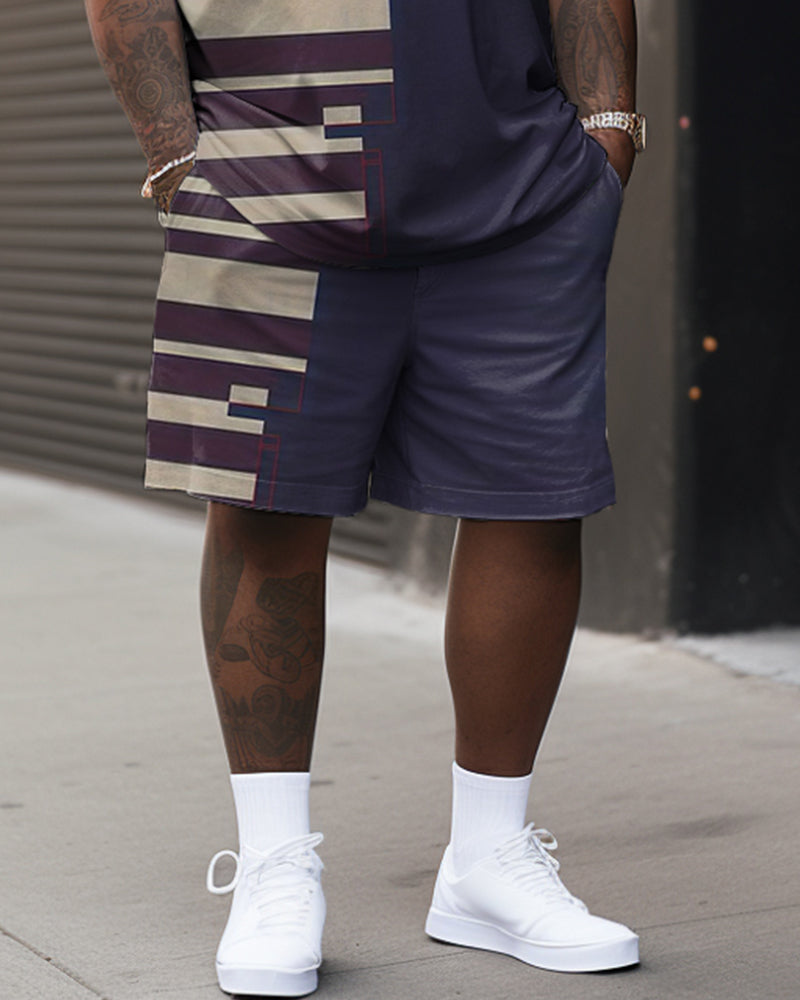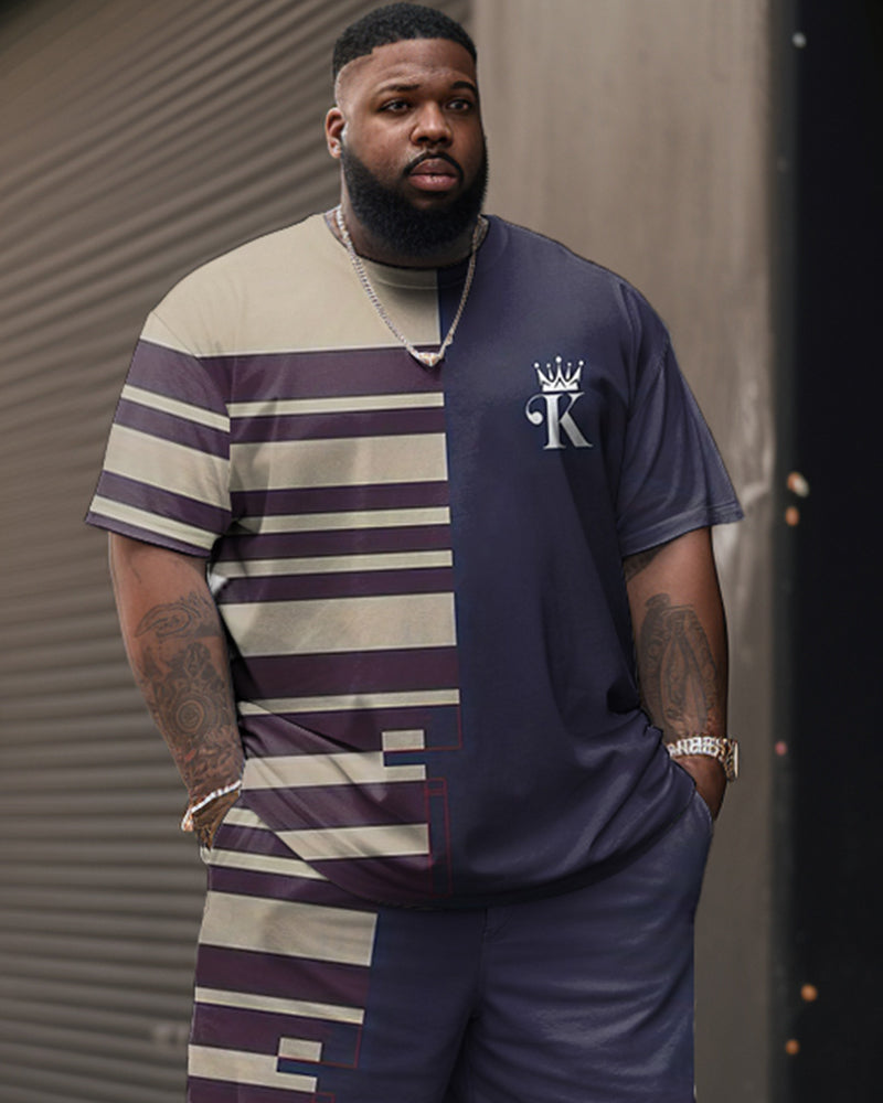 Street Casual Striped Contrast Color Stitching K Letter Crown Print Large Men's Suit