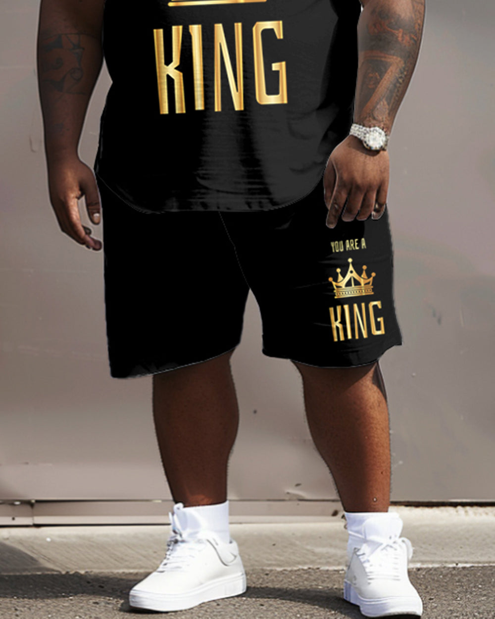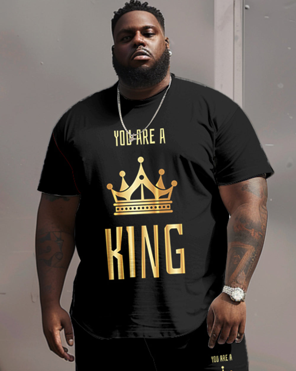 Crown your casual wear. This big and tall guy's set exudes understated luxury. The golden crown print and the bold lettering radiate confidence and a regal aura. Its oversized fit ensures comfort and ease. From casual strolls to gatherings with friends, this set will express your unique style.