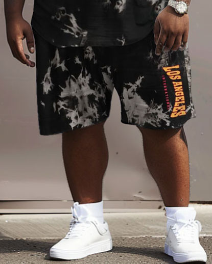 This black set for big & tall men brings a bold, urban vibe to your wardrobe. It features eye-catching white ink splatter details and lettering, giving it a worn-in look that nods to hip-hop style. Perfect for casual outings, this relaxed set combines simplicity with street fashion flair.