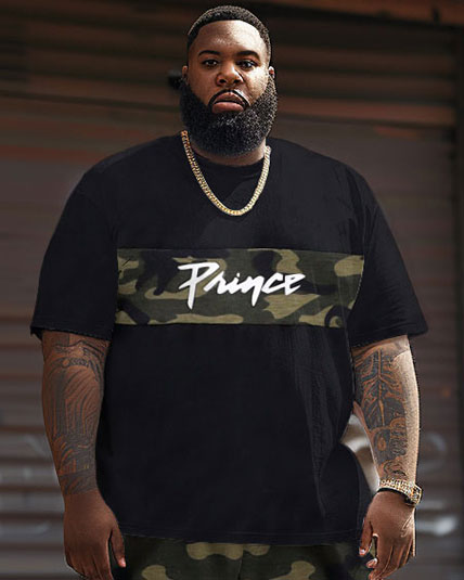 Street Style Patchwork Camouflage Letter Print Large Men's Suit