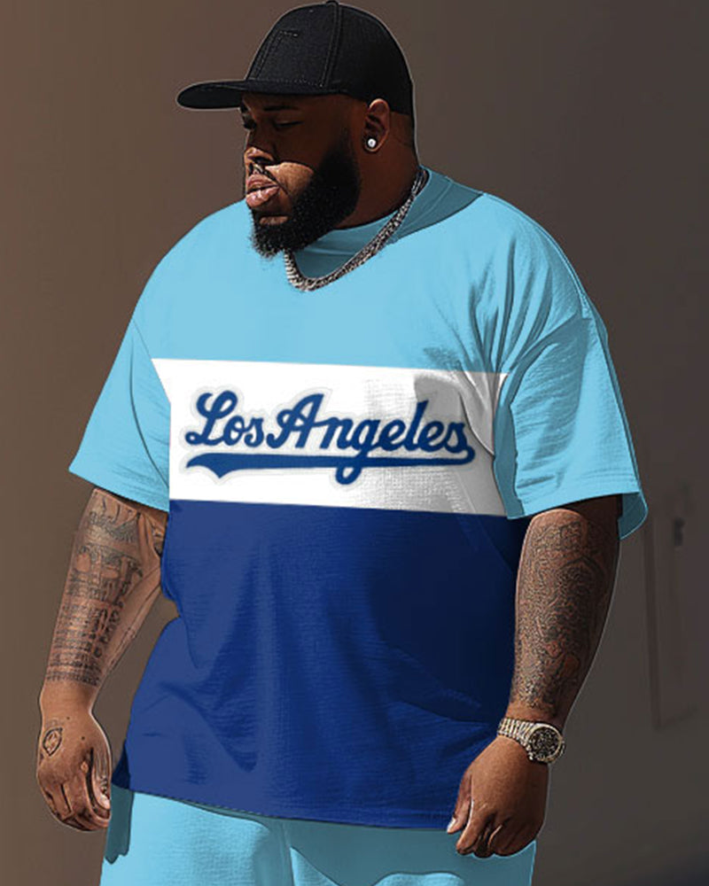 This big & tall men's two-piece set features a color-blocked stripe design. With "LOS ANGELES" letter prints, this set combines athletic style with casual comfort. It's easy to mix and match, perfect for relaxed days and active outings. Timeless and sporty, it is a versatile spring and summer outfit.