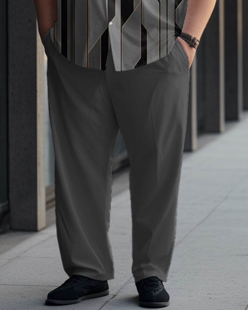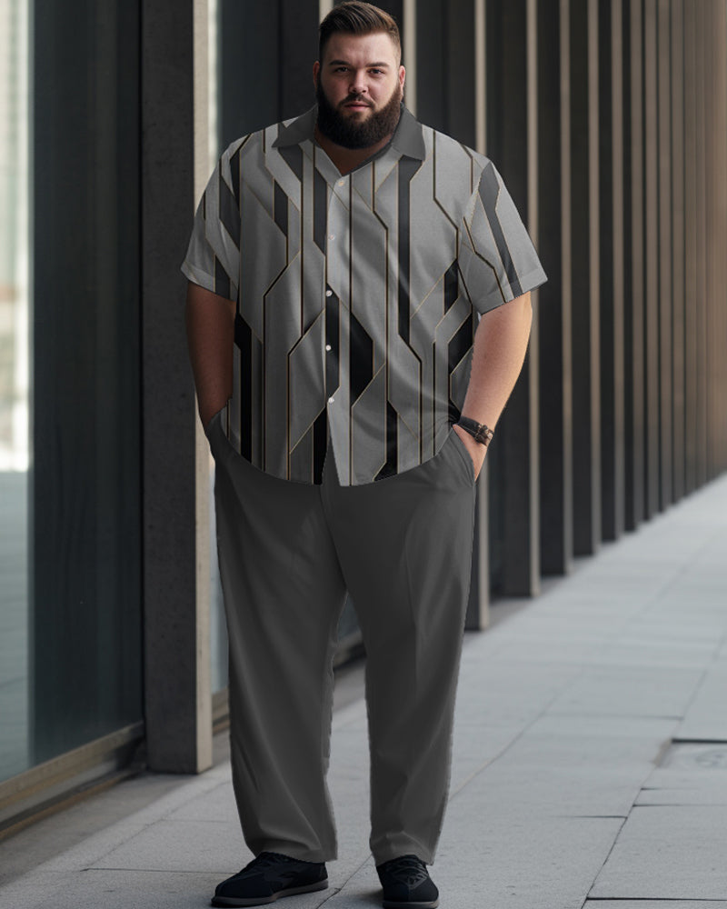Striped Button Printed Oversized Men's Short Sleeved Shirt Set