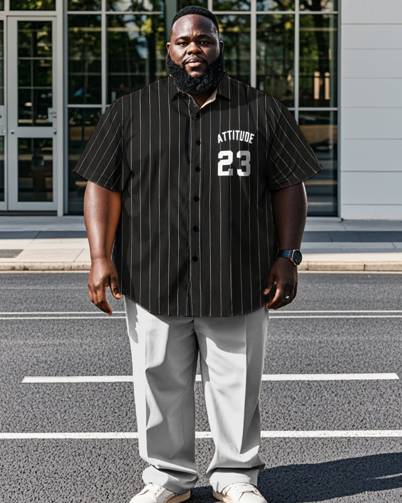 Striped Letter Color Short-sleeved Shirt Plus Size Men's Suit