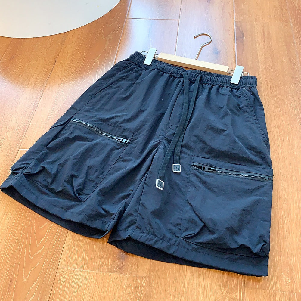 Tooling Wind! Three-dimensional Big Pockets! Summer Men's Elastic Waist Lace-up Pants Shorts Fashion