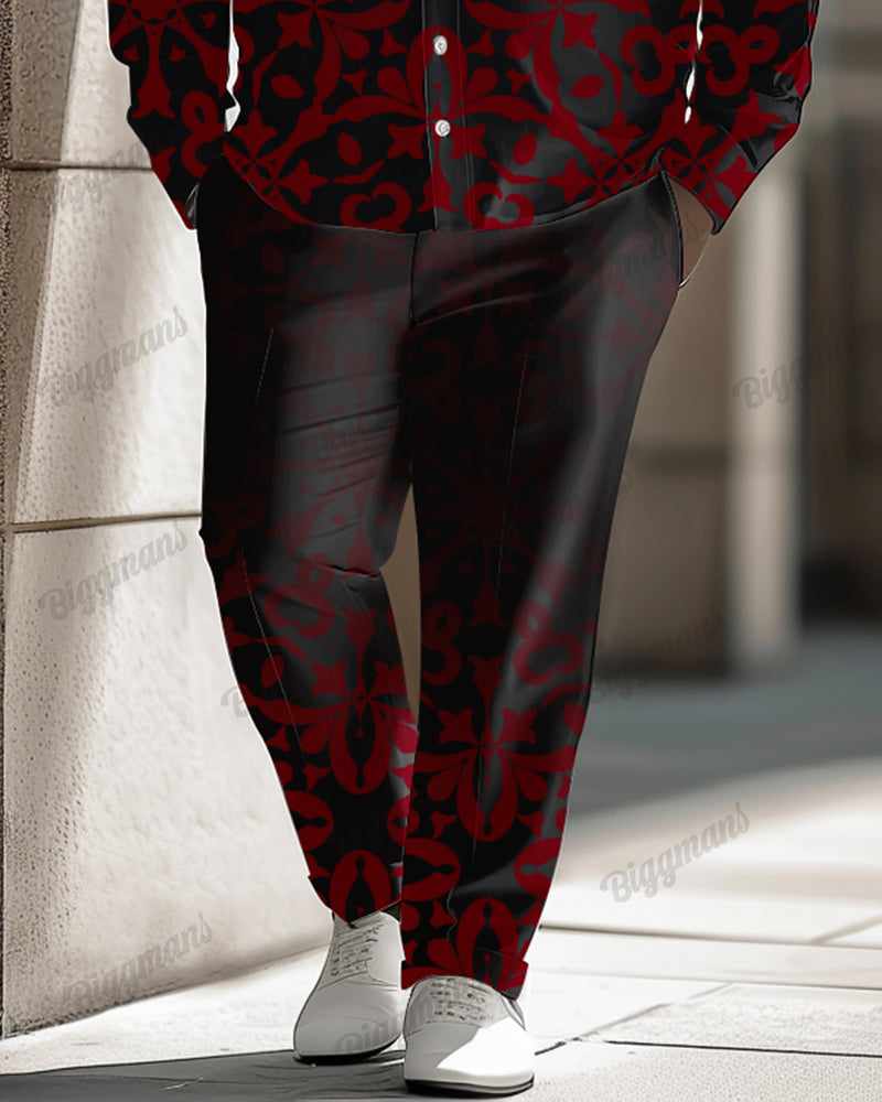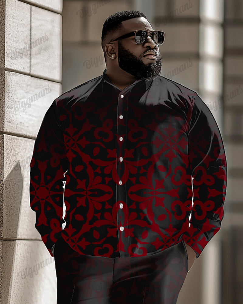 Vintage Gradient Jacquard Pattern Long Sleeve Lapel Shirt 2 Piece Set Men's Plus Size