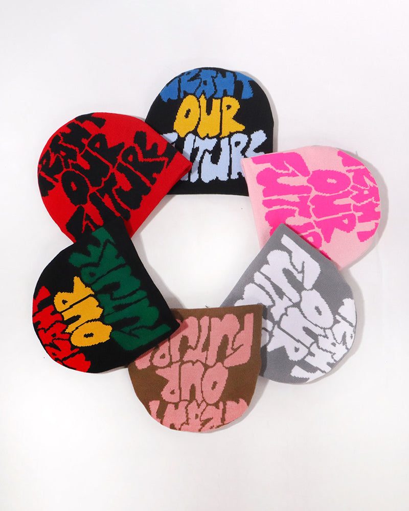 WANT OUR FUTURE Alphabet Jacquard Knit Hat