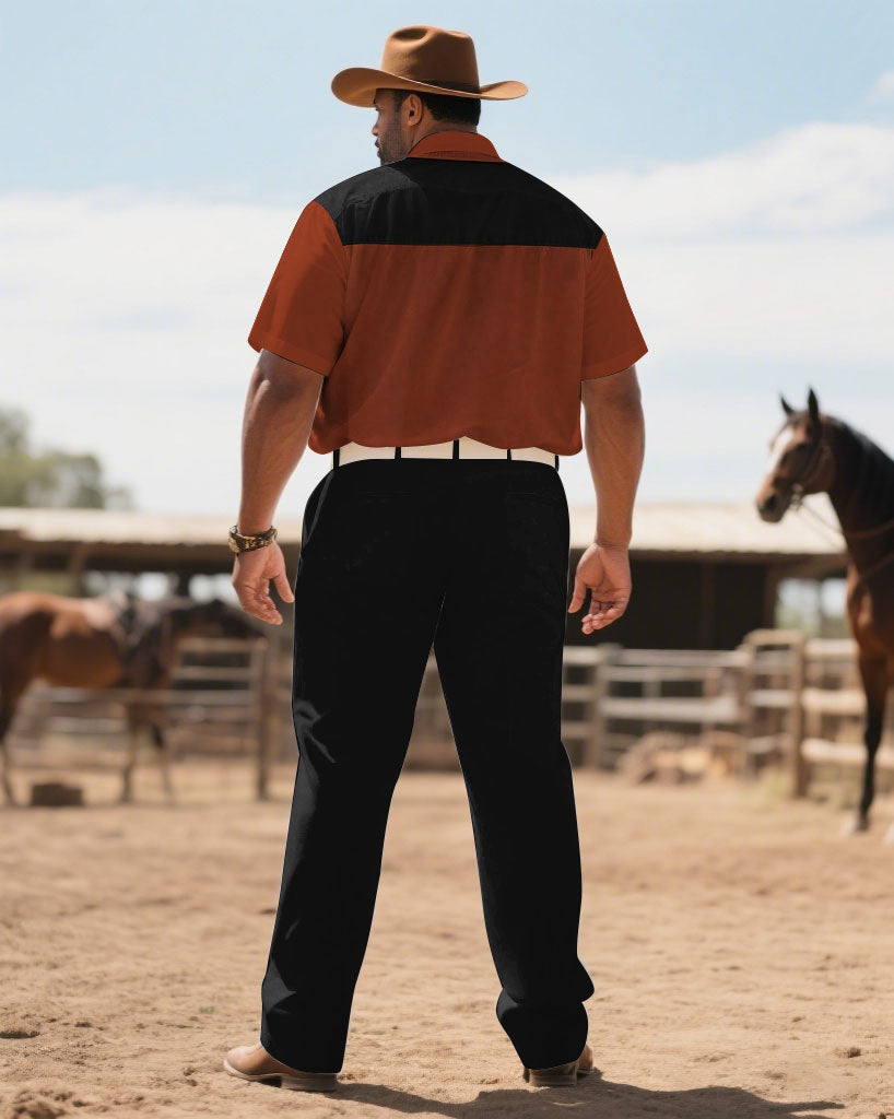 Western Denim-Men's Plus Size Black & Red Skull Flower Print Short Sleeve Shirt Trousers Suit