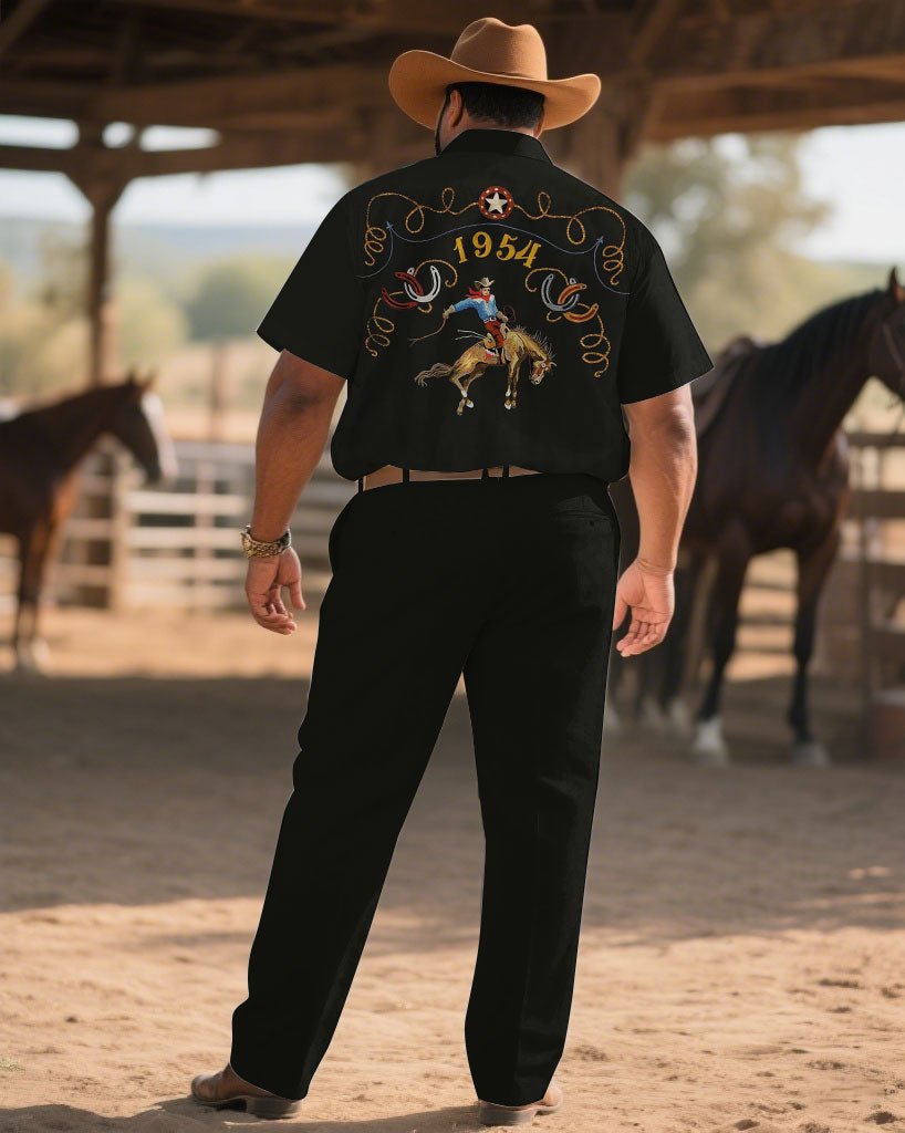 Western Denim-Men's Plus Size Black Wild Horse Hero Short Sleeve Shirt Trousers Suit
