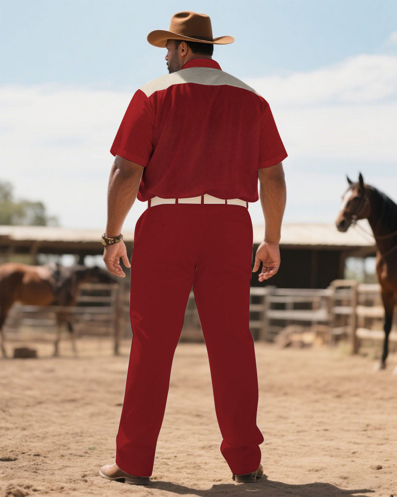 Western Denim-Men's Plus Size Red Guitar Skull Short Sleeve Shirt Pants Suit