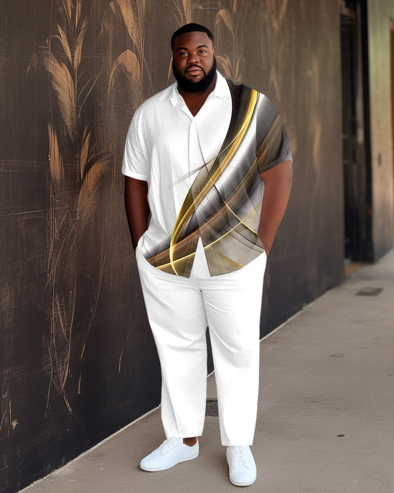 Embrace the simple charm of a white walking set. The characteristic gold lines are matched with monotony, and the black gradient background is like the traces left by the lines, harmonious and unified. It combines comfort and fashion and is ideal for big men who appreciate understated and sophisticated fashion.